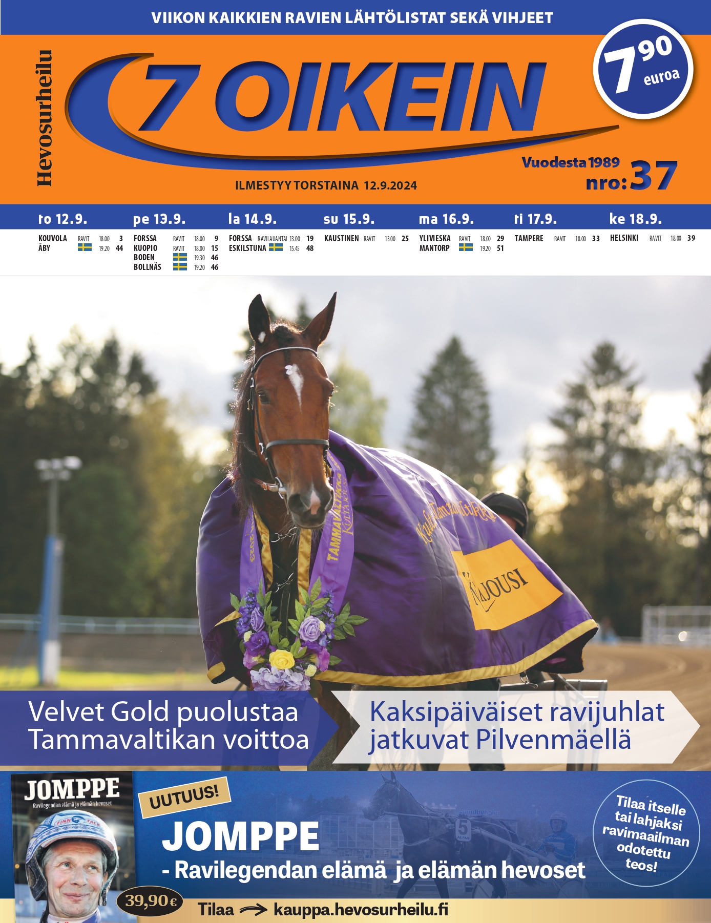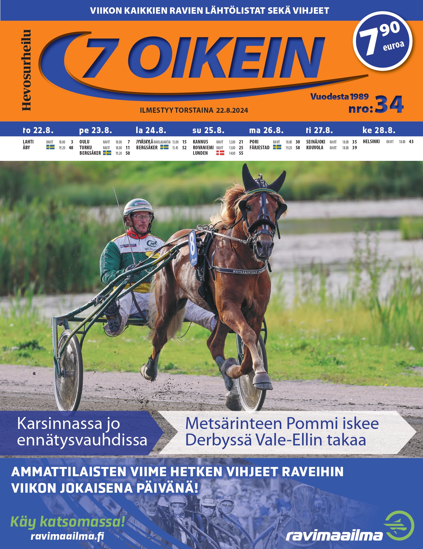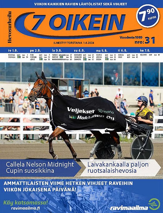 Lehdestä löydät myös Veikkauksen pohjoismaisten pelikohteiden lähtölistat sekä pelilistaukset Ruotsin pääravien kohdelähdöistä torstaista maanantaihin. Lisäksi 7 oikein tarjoaa kattavat raportit ja tulokset edellisen viikon merkittävimmistä raveista. Tilaamalla lehden saat kaiken tämän koottuna yksiin kansiin – helposti, selkeästi ja ajankohtaisesti. Lehti ilmestyy joka torstai, yhteensä 52 kertaa vuodessa, joten pysyt ajan tasalla koko vuoden ympäri.