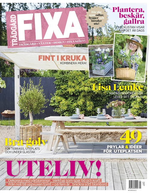 Allt om Trädgård Fixa on ruotsinkielinen erikoislehti sinulle, joka näet puutarhan ja pihan luonnollisena jatkeena kodillesi. Lehti tarjoaa runsaasti ideoita ja käytännön vinkkejä ulkotilojen sisustamiseen, pihojen ja parvekkeiden suunnitteluun sekä viihtyisän ympäristön luomiseen vuodenajasta riippumatta.