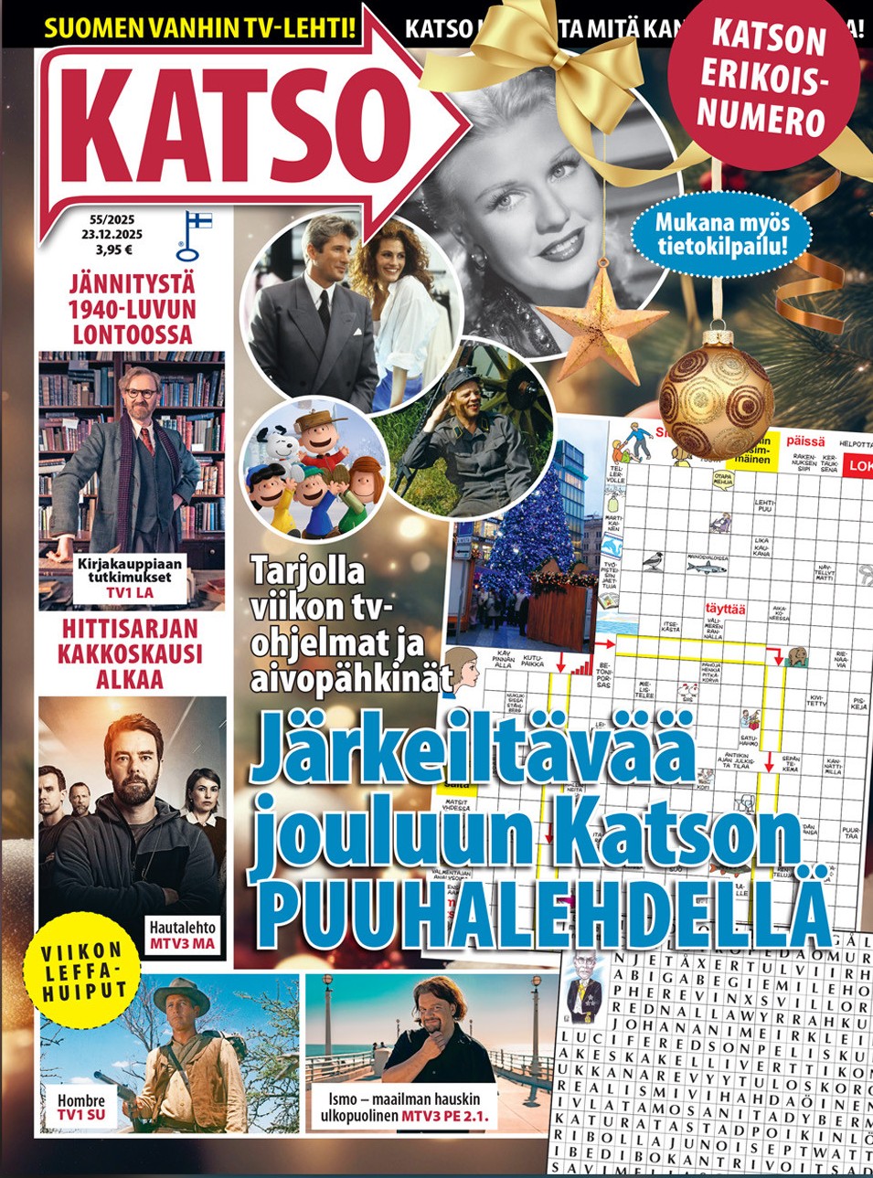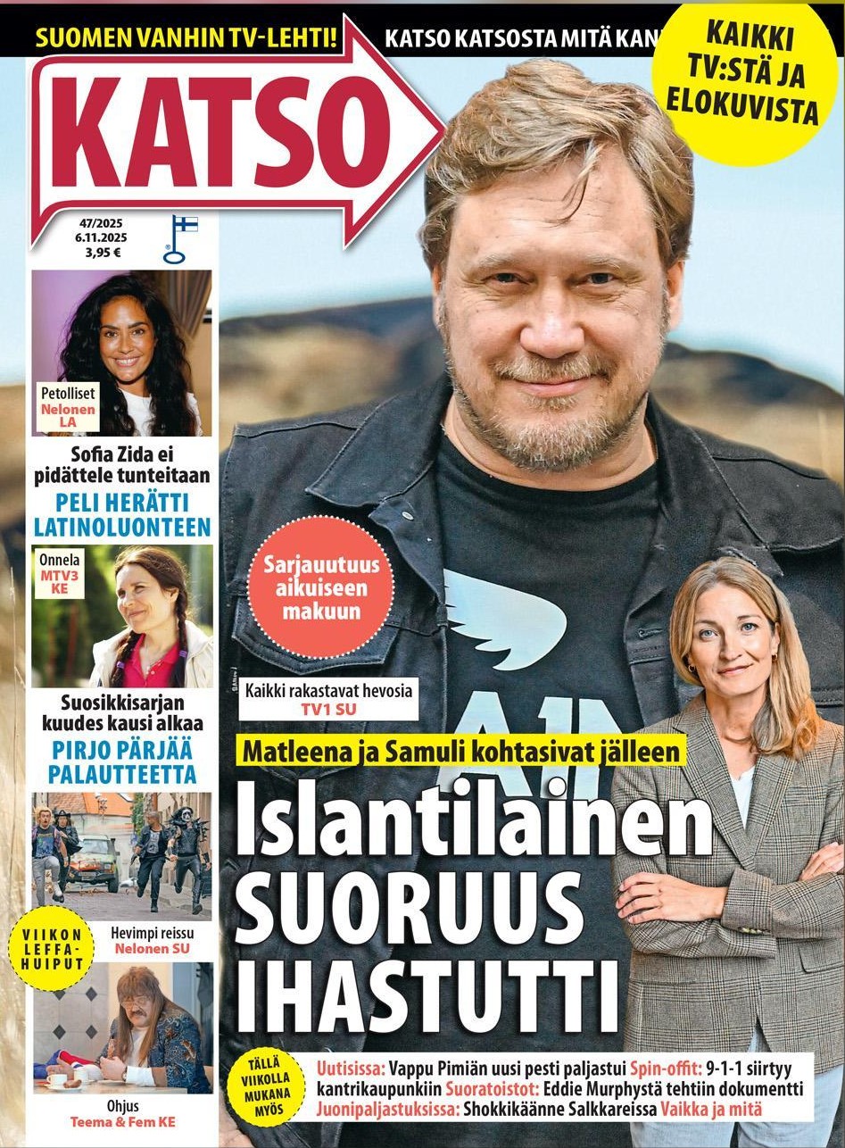 Tilaa Katso-lehti itselle tai lahjaksi Lehtitukku.fi-sivustolta ja saat viikoittain kattavan ja monipuolisen viihdepaketin suoraan kotiisi. Se on täydellinen lahjaidea läheiselle, joka arvostaa viihdettä, tai itselle, jos haluat tehdä tv-kokemuksestasi entistäkin antoisamman. Katso-lehti tuo viikoittain ajankohtaista sisältöä, selkeitä ohjelmatietoja ja syvällistä viihdejournalismia. Tee tilaus nyt ja uppoudu television ja elokuvien kiehtovaan maailmaan – Katso pitää sinut ajan tasalla, viikosta toiseen! Tilaamalla printtilehden hyväksyt kustantajan (Aller Media Oy) . Tilaamalla digilehden hyväksyt kustantajan (Aller Media Oy) yleiset digituotteiden tilausehdot . Tilaamalla vahvistan lukeneeni Aller Media Oy:n tietosuojaselosteen.