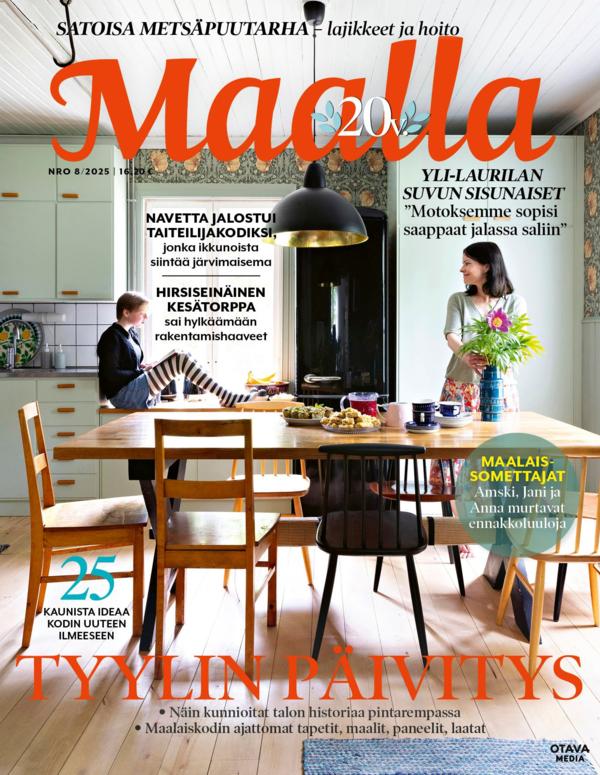 Unelma elämästä maalla on nyt lähempänä kuin koskaan – Maalla-lehti vie sinut keskelle suomalaisen maalaiselämän kauneutta ja rauhaa. Tämä ainutlaatuinen country living -lehti on suunnattu kaikille, jotka haaveilevat kakkoskodista tai pysyvästä muutosta luonnon helmaan. Olitpa sitten kunnostamassa vanhaa taloa, sisustamassa mökkiä tai etsimässä inspiraatiota puutarhanhoitoon, Maalla-lehti tarjoaa sinulle runsaan kattauksen tunnelmaa, tarinoita ja käytännön ideoita. Lehti on saavuttanut upean suosion, eikä ihme – sen jokainen numero on täynnä harmoniaa, lämpöä ja elämänmakuisia sisältöjä, jotka houkuttelevat palaamaan uudelleen ja uudelleen.